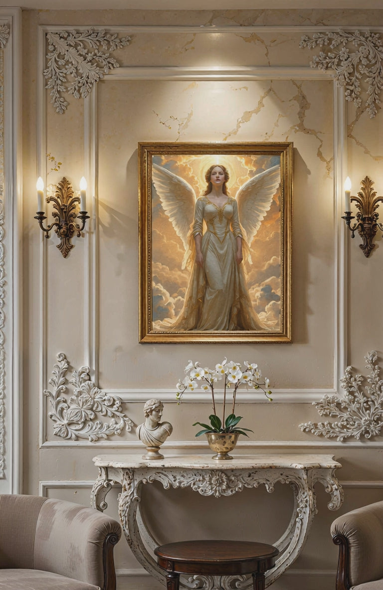 • Gallery walls with classical art, religious themes, or celestial beauty