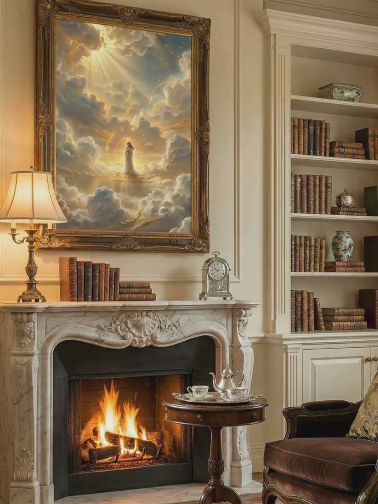 - Gallery walls with classical art, religious themes, or celestial beauty